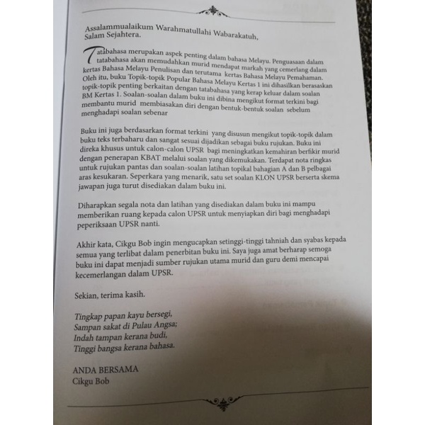 Di kesempatan ini saya ingin mengucapkan terima kasih kepada puan salmah yang mengajar saya bahasa malaysia ketika di tingkatan 5 dengan penuh .